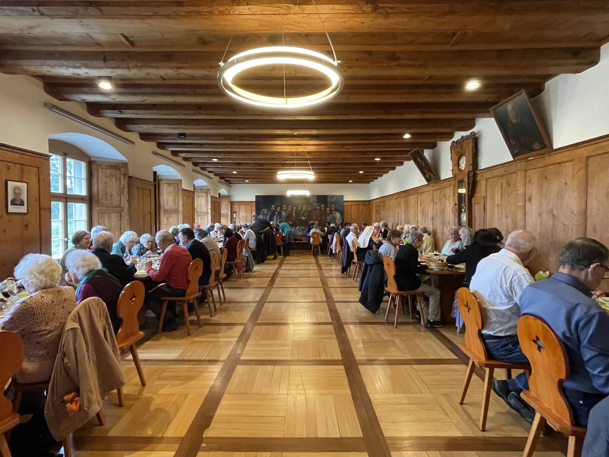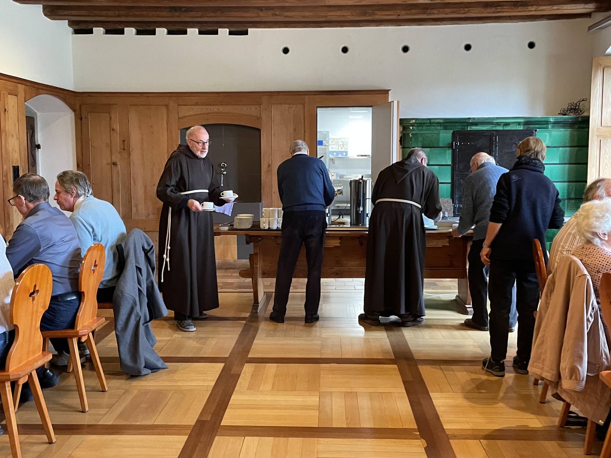 Die grosse Besucherzahl zeigte einmal mehr, wie lebendig die franziskanische Tradition im Wesemlin ist und welche Wertschätzung die Kapuzinergemeinschaft geniesst. Nach alter Tradition versammelten sich alle Anwesenden im Klosterrefektorium zum gemeinsamen Mittagessen. Bei einem köstlichen Risotto wurde die Gemeinschaft weiter gestärkt, eingeleitet durch ein Gebet und den aus dem Gottesdienst bekannten Kehrvers, der im Kanon gesungen wurde. Diese Tradition des gemeinsamen Essens erweitert die Gemeinschaftsfeier und lässt den Festtag in geselliger Runde ausklingen.