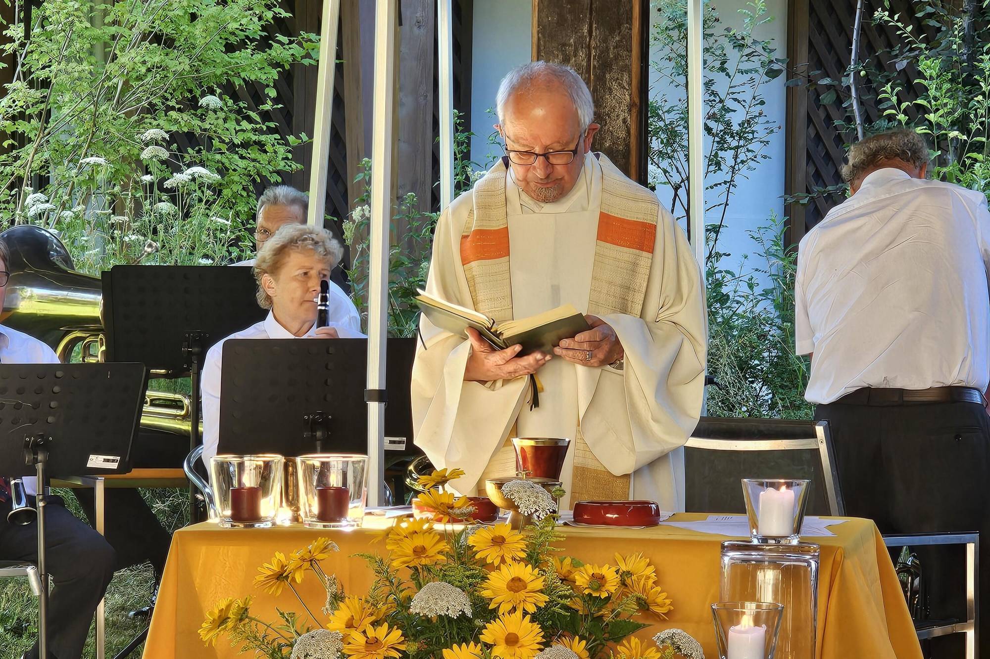 Beim anschliessenden Apéro hatten wir Gelegenheit unsere Kontakte mit lieben Menschen zu pflegen, die Namenstage zu feiern und uns beim herrlichen Sommerwetter zu erfrischen.