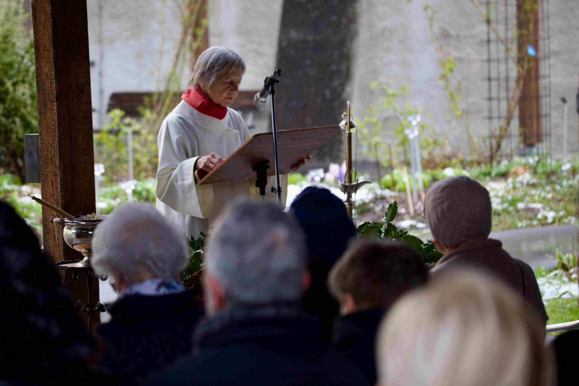 Predigt: Ruth Bisang, Theologin | Erklärung zur Stechpalme: Bruder Paul | Musikalische Begleitung: Zsuzsanna und Akos Szabó (elektrisches Piano und Saxophon)