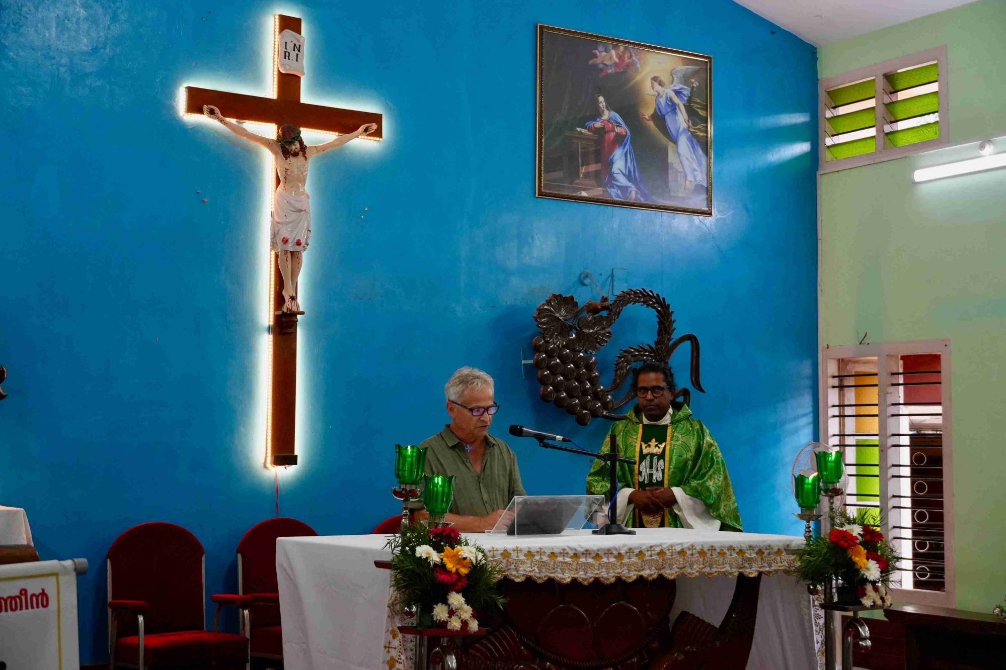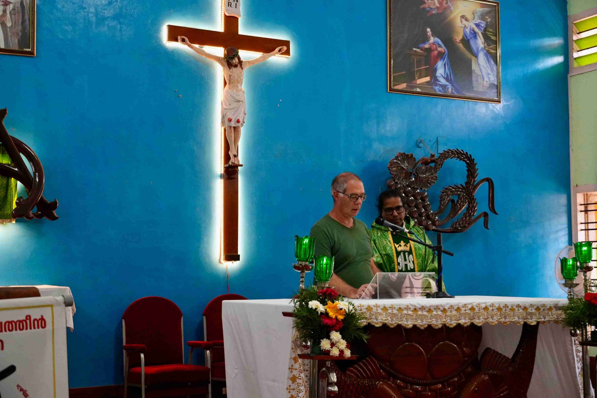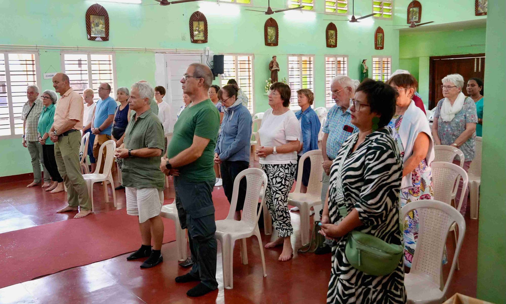 In der Kapelle spürten wir eine besonders dichte Atmosphäre. Unsere Stimmen, getragen von Erinnerungen, mischten sich mit den Geschichten der Menschen, die hier zu Hause sind. Für einen Augenblick schien es, als ob Kerala und die Schweiz dieselbe Sprache des Glaubens sprächen.