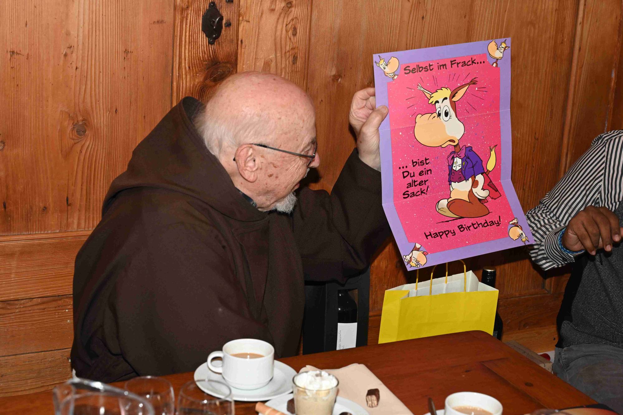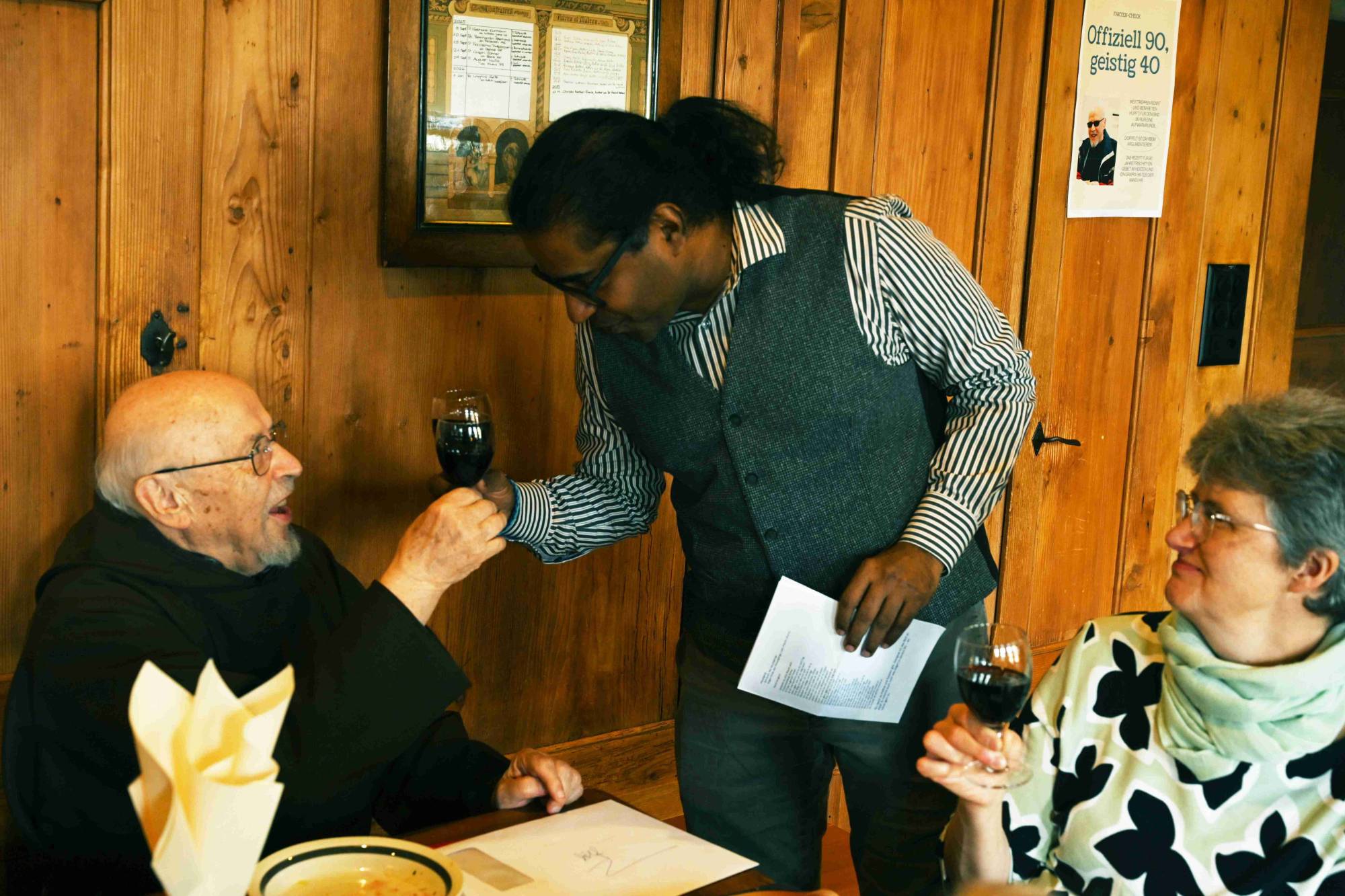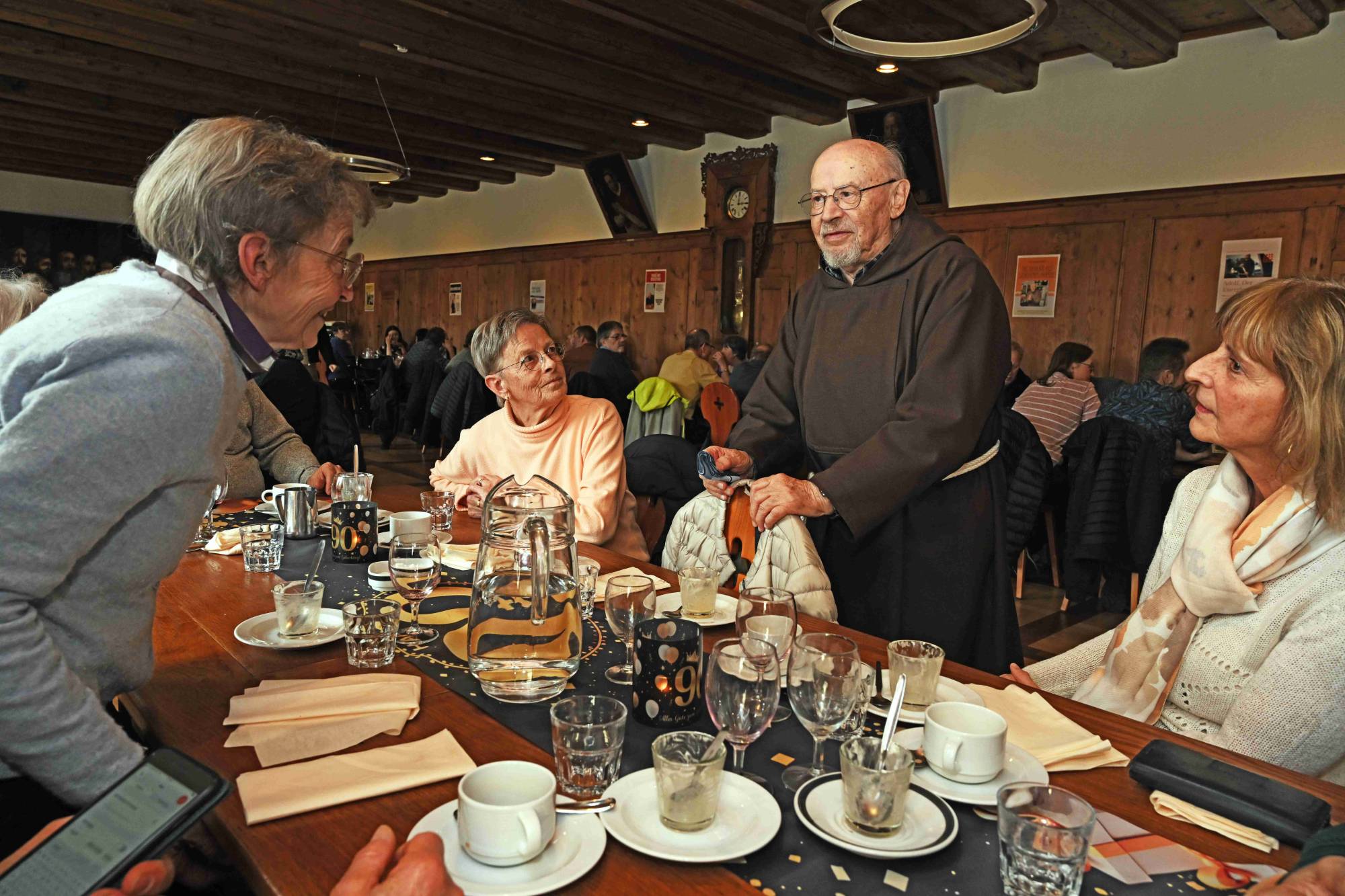 Die Geburtstagsansprache von Bruder George traf den Ton: respektvoll, liebevoll, und mit dem notwendigen Mass an Humor. Ja, Adolf sei mit 90 tatsächlich noch derjenige, der die Spülmaschine leert, der Gottesdienst feiert mit innerer Kraft, der beim Diskutieren wirkt wie mit vierzig. Und ja, es gebe auch die anderen Momente: die sorgfältig hinter der Wanduhr versteckte Grappaflasche, das Handy, das mitten im Gebet klingelt, die Banane um drei Uhr nachts.