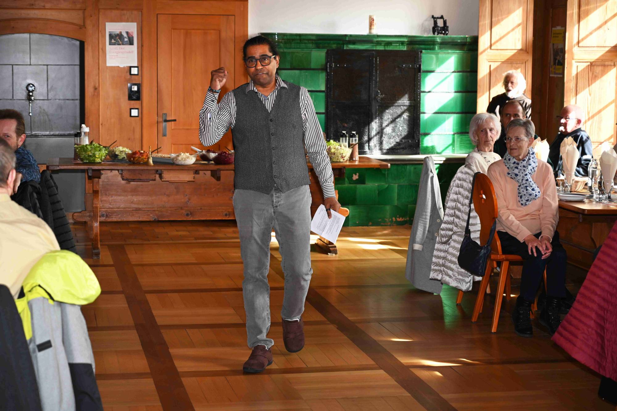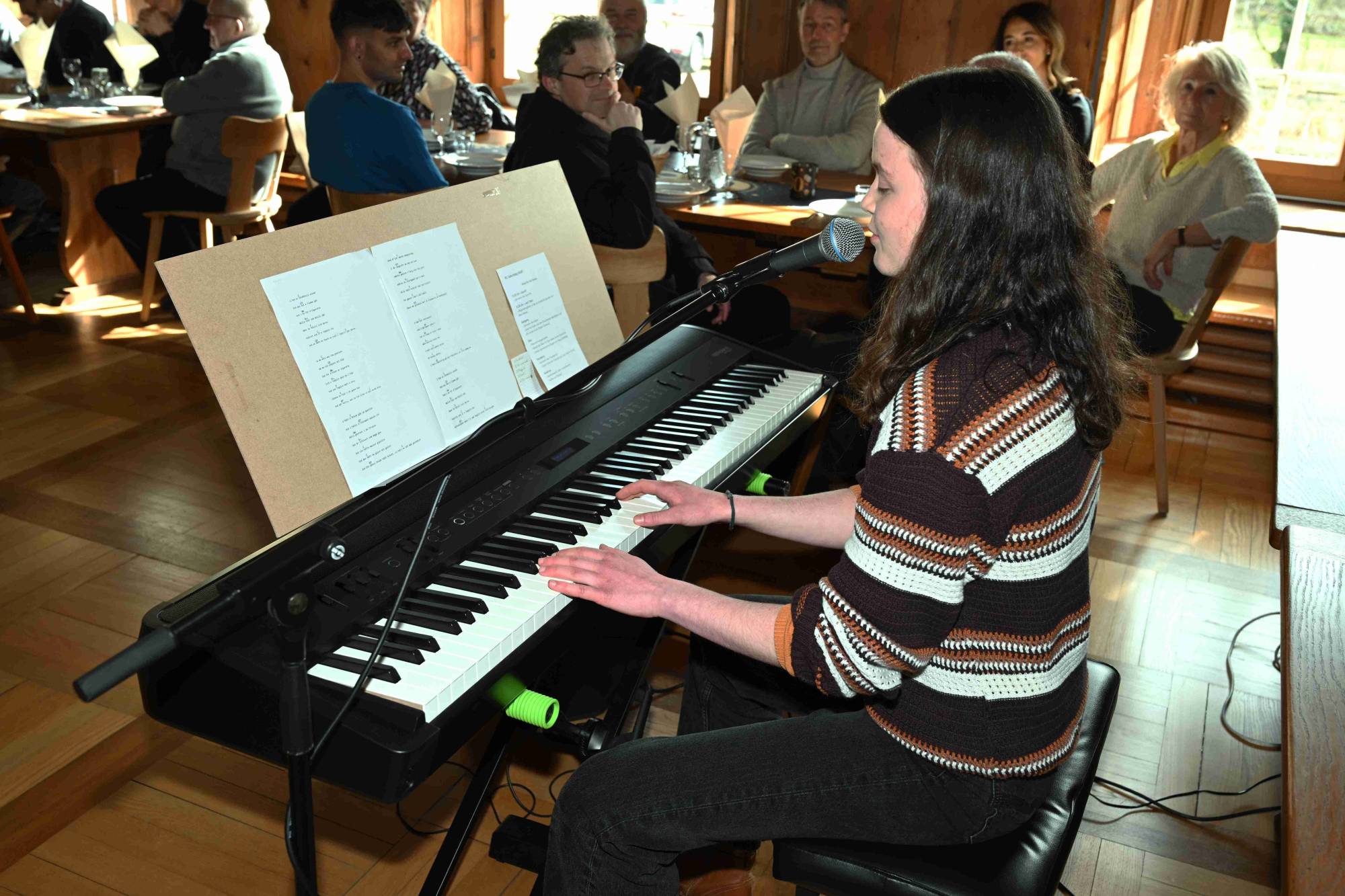 Zum Mittagessen sang Rahel Wüst fünf Lieder, die sie bewusst gewählt hatte. «Für immer uf di» von Patent Ochsner – ein Lied, das an die denkt, die nicht mehr da sind, besonders an die Mutter – und «Famili» von Kunz, ein Lied über Verbundenheit über Grenzen und Distanzen hinweg. Sie sang mit einer Wärme, die den Raum füllte. Es waren Momente stiller Berührung.