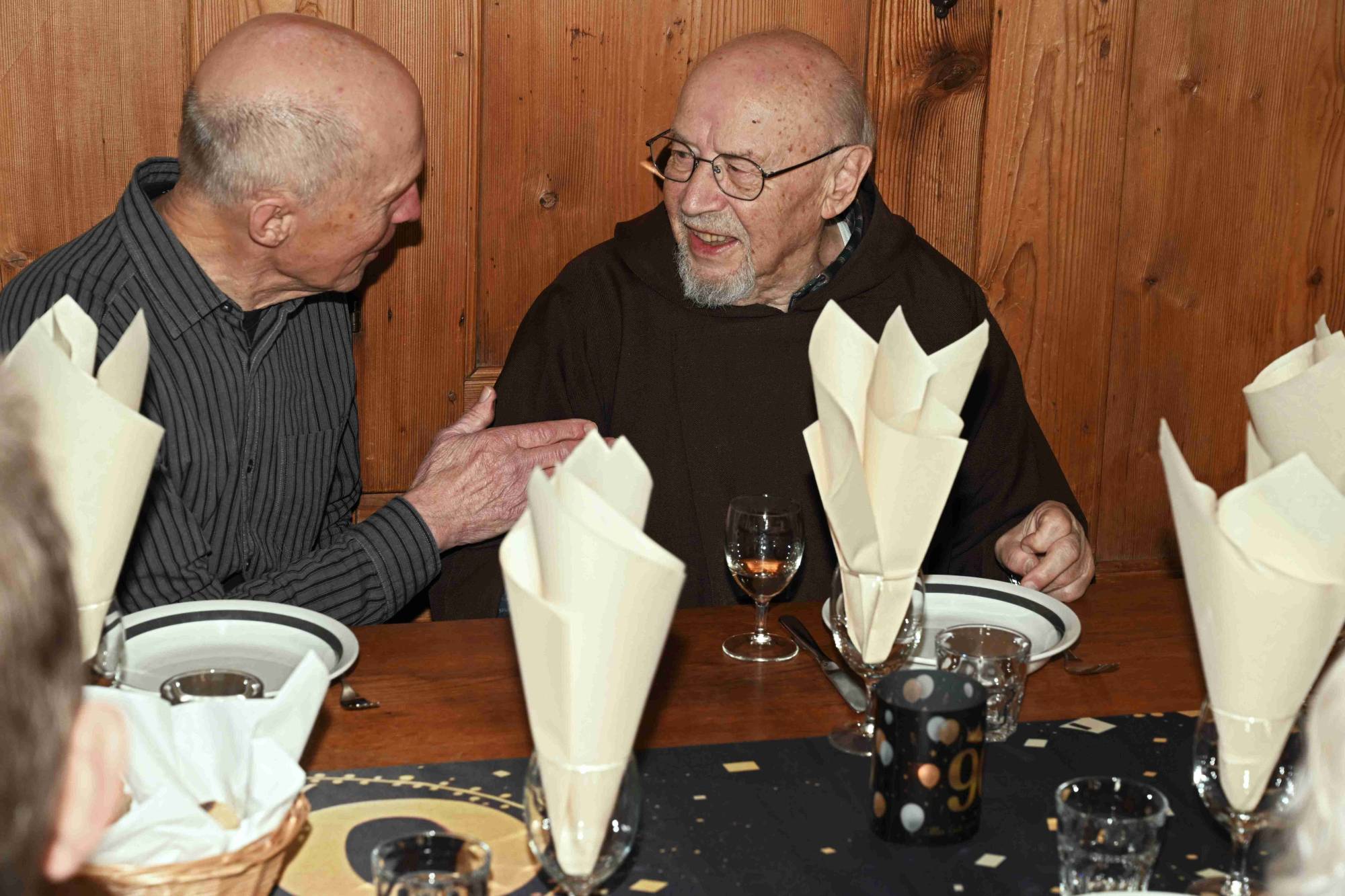 Bruder Adolf selbst ergriff nach dem Hauptgang das Wort. Kurz, direkt, dankbar. Er sprach von den Geschwistern und deren Kindern, vom verlorenen und wiedergefundenen Kontakt, vom Theologiestudium auf Französisch in Sitten – vier deutschsprachige Studenten, ein fremdsprachiger Freund, viel Lernen.
