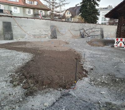 Er fand zuerst im Gemüsegarten einen provisorischen Platz, bis er dann im März 2023 in der Eingangspartie zum Kapuzinergarten an seinen definitiven Ort gepflanzt wurde.