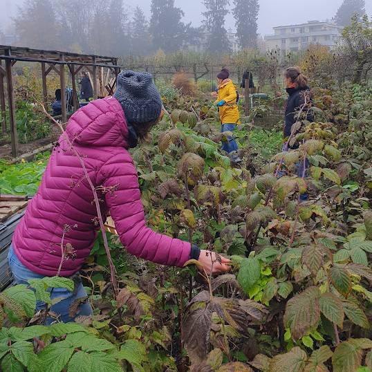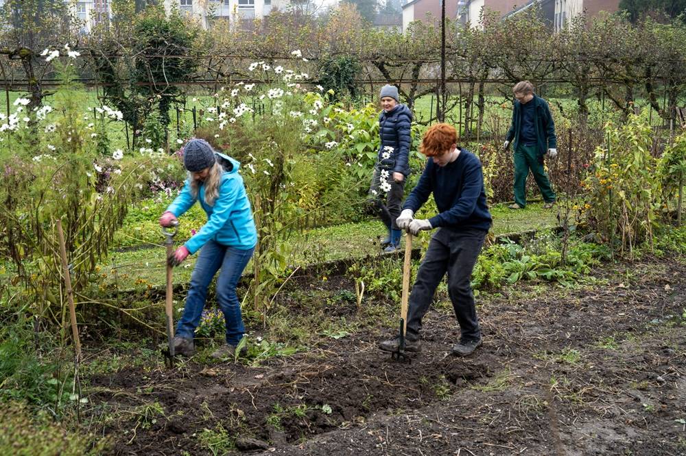 Am Samstag, den 8. November beteiligten sich 35 Erwachsene an den vielfältigen Arbeiten: Jäten, Himbeeren schneiden, Boden lockern, Gründüngung einsäen, Rasen mähen, aufräumen und ernten.