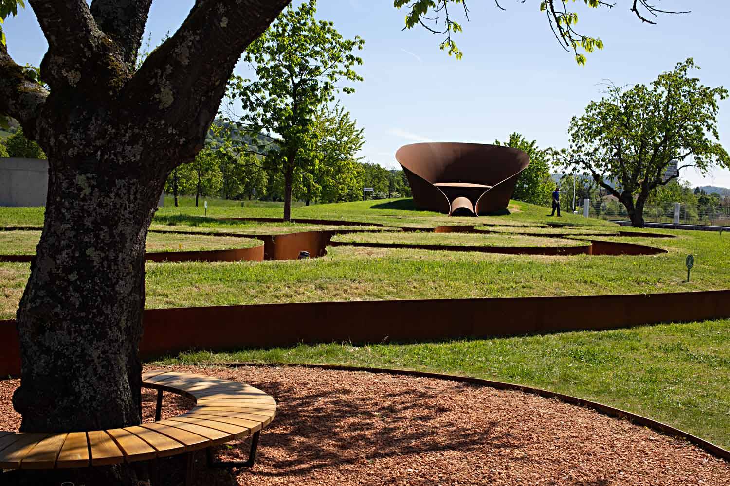 Mit Interesse studierten di Hausräte auch den Doshi Retreat. Zuerst wurden die entsprechenden Pläne und Karten studiert. Später ging es ins Feld. Auch hier eine eindrückliche Gestaltung. Nicht zu hören auf der Homepage sind die unterschiedlichen Klangfelder, die es dabei zu entdecken gab. "Inspiriert von indischer Spiritualität, ist das Doshi Retreat eine Reise durch Räume und Klänge zu einem Ort der Kontemplation."