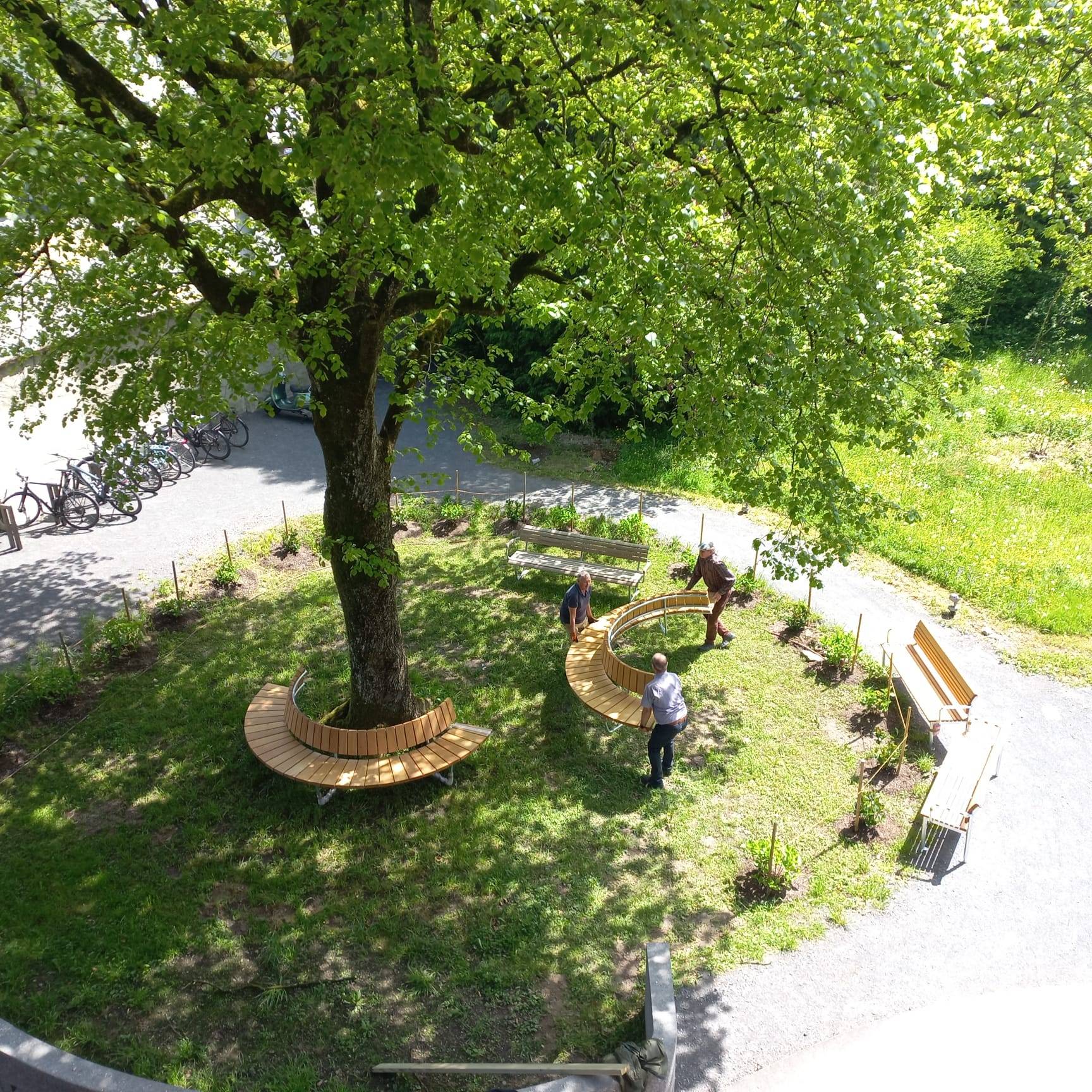 Es entstand die Idee, diesen Baum mit einer kreisförmigen Bank zu umgeben, einem Geschenk des Freundeskreises Kapuzinerkloster Wesemlin. Diese Rundbank ist nicht nur ein Ort der Ruhe und Besinnung, sondern auch ein Zeichen der Solidarität und des Miteinanders, zusammengebaut durch die Hände einiger Bewohnerinnen und Bewohner, die in gemeinsamer Anstrengung und mit viel Herzlichkeit dieses Projekt verwirklichten. Es ist mehr als nur eine Sitzgelegenheit; sie ist ein Symbol der Gemeinschaft und des gemeinschaftlichen Schaffens.