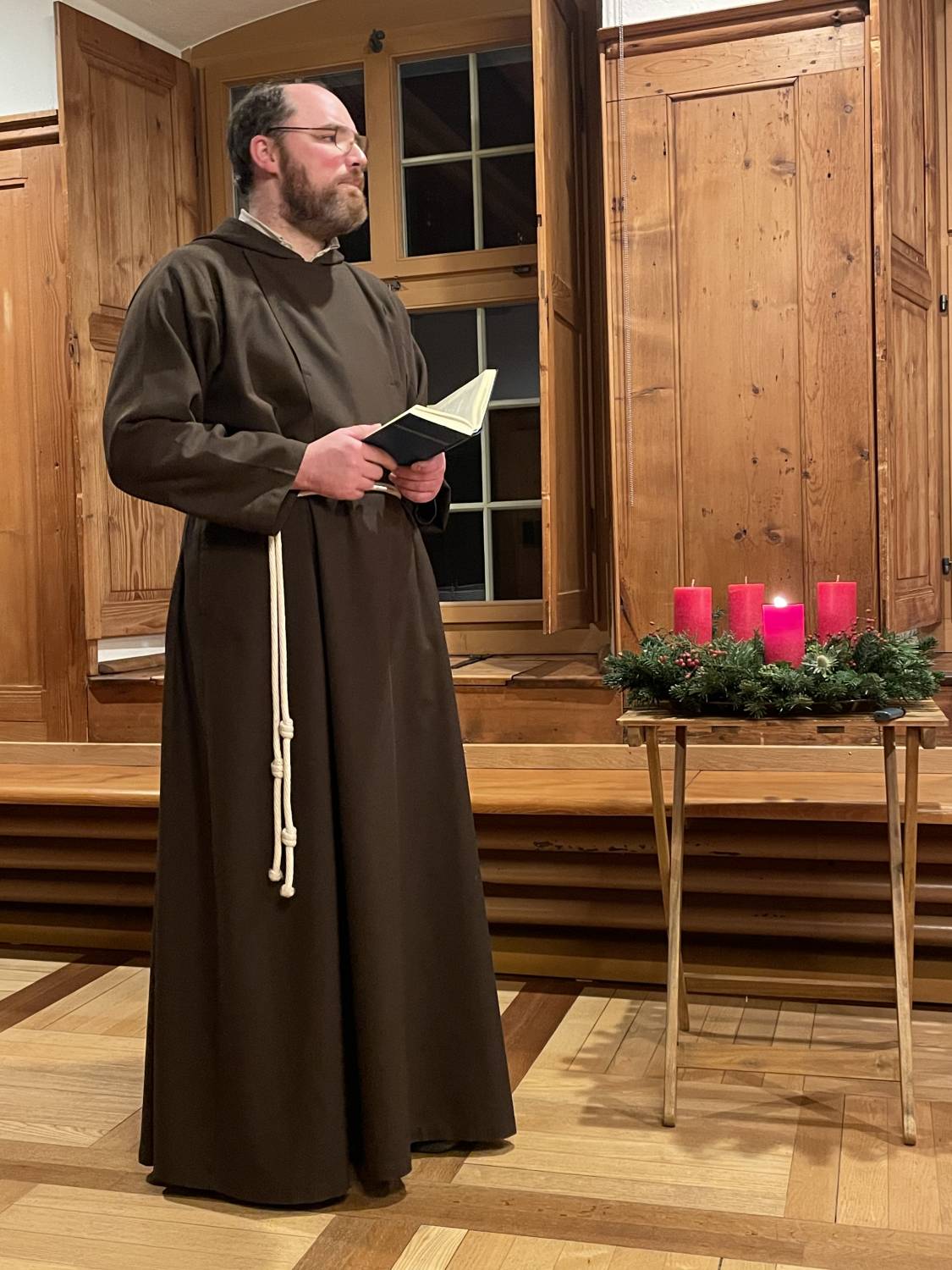 Bruder Pascal als Ansprechperson der Suppenstube eröffnete die Feier mit einem gemeinsamen Lied, und Bruder George als Guardian und Hausherr begrüsste die Gäste. In seiner kurzen Ansprache liess er die Gäste wissen, dass sie heute Abend die Hauptrolle innehaben, denn ohne sie gäbe es diese Feier nicht. Er machte auch auf den Gabentisch aufmerksam, der für die Gäste vorbereitet war.